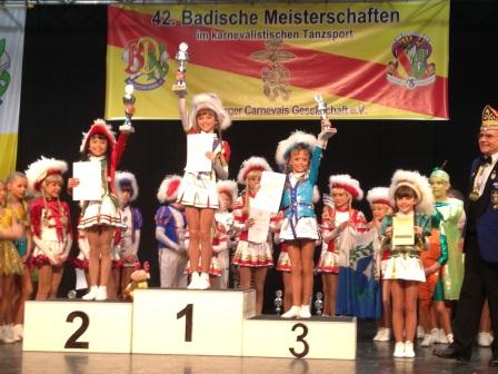 Ich konnte auch in Ludwigshafen mit 454 Punkten meinen Vorjahressieg verteidigen. Zweite wurde Jasmin Eggers von der Tanzsportgarde Plankstadt (die sich damit auch für die Süddeutschen Meisterschaften qualifizierte) und den dritten Platz belegte Lilly Reifel von KG Froschköpp Offenbach mit jeweils 443 Punkten: